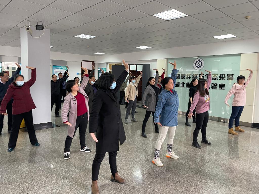 2021年4月1日,校体育部向澳门中特网 工会全体职工推广八段锦健身操法,通过现场演示、分步教学、完整跟练的方式,为大家提供这套实用方便、行之有效的健身锻炼方案。本次活动的开展得益于校体育部叶东茂教授的亲身经历,因他在疫情期间锻炼八段锦体会到这一中华传统养生文化宝藏确实有强身健体、疏通筋骨之效,才有了号召全校学习八段锦的想法。本次活动也得到了全体职工的大力支持和积极响应,现场气氛浓厚而融洽,有职工反馈跟练两次便发热出汗的现象,大家纷纷称赞这次活动举办有意义。