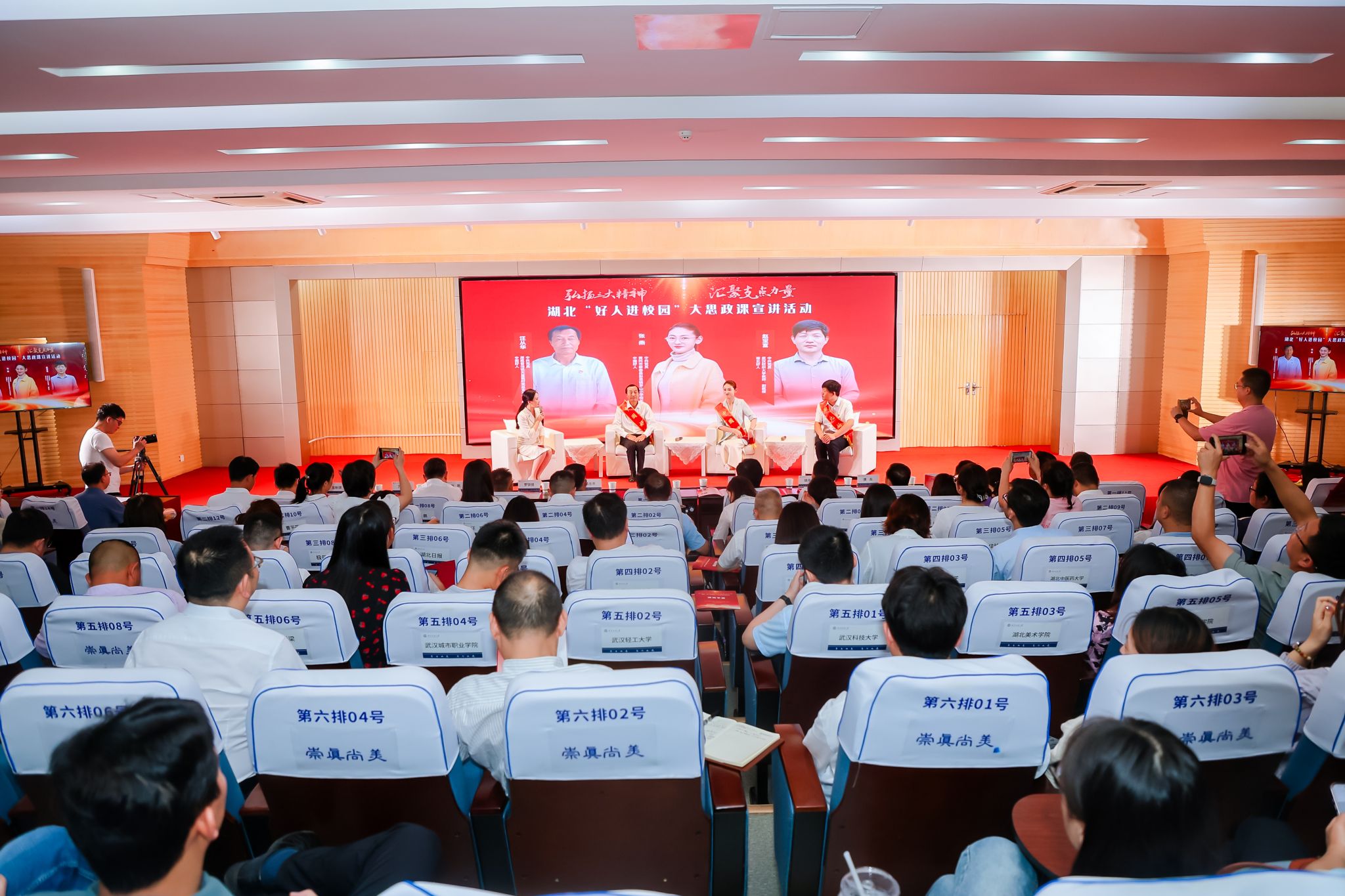 在“湖北好人”故事分享暨纺大思语论坛环节,无论是黄旭华的女儿黄峻讲述了父亲黄旭华院士隐姓埋名30年,带领研制“大国重器”的历史性壮举;还是中国好人、湖北道德模范、武汉市盲童学校教师张龙用爱和美育点亮了盲童们的心灯,让每一个盲孩子都能在自己的人生舞台上闪闪发光;以及革命老英雄、荆楚楷模李明海两次请战入朝,又主动辞去公职回家务农,浴血奋战,牺牲奉献的故事,均让在场的师生生无不动容。宣讲活动,特别是“湖北好人”故事分享在澳门中特网