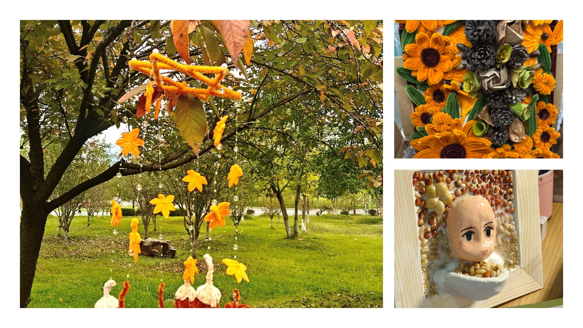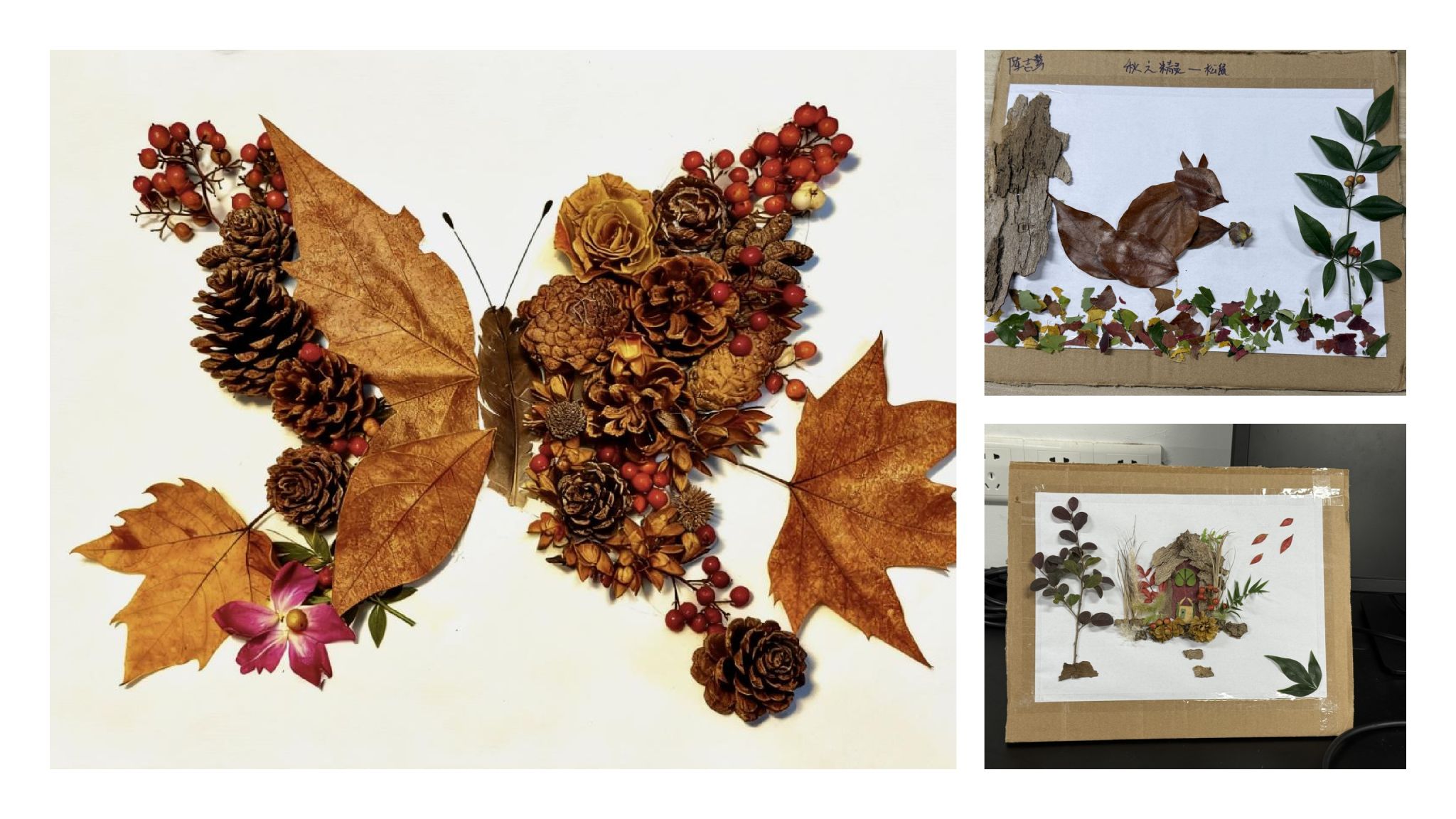 自活动启动以来,同学们积极响应,共征集到绘画、手工、摄影、数字媒体等各类作品数百件,同学们围绕自我认知、情绪管理、生命成长等主题,结合秋日元素,创作出了一批兼具艺术美感与心理深度的优秀作品。绘画作品如静谧的森林风景、灵动可爱的松鼠,色彩清新,展现了同学们对自然之美的细腻观察与内心宁静的追求;手工艺品琳琅满目,既有利用秋日落叶拼贴出的蝴蝶造型,寓意蜕变与希望,也有书写着“顺遂”字样的精美团扇,寄托了对美好生活的祝愿;此外,还有栩栩如生的黏土作品、充满童趣的小蛋糕造型手工等。每一件作品都凝聚了创作者的情感与思考,将心理健康的主题通过具象化的艺术形式生动呈现。