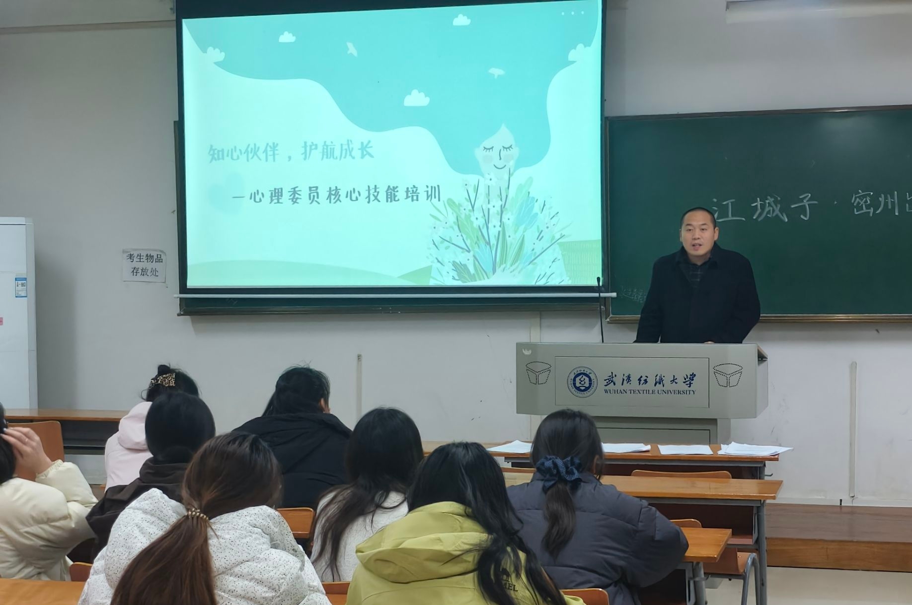 毛成兴围绕心理健康的内涵与现状、大学生常见情绪困扰识别、心理压力缓解方法以及心理委员的职责与沟通技巧等方面展开。