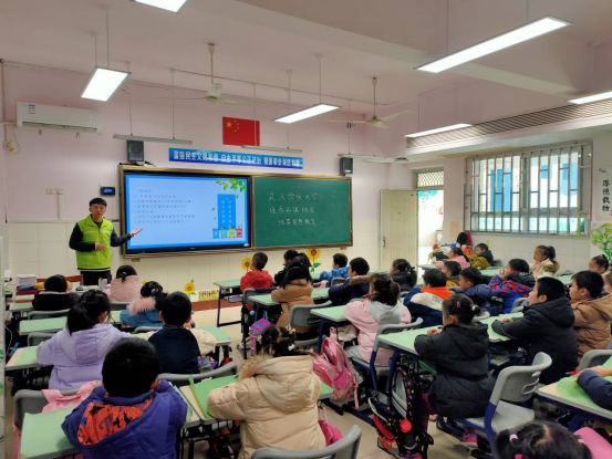 12月27日下午,武昌区水果湖二小一年级4班开展了一场别样的主题班会。课堂上互动热烈,武汉纺织大学绿色环保协会的志愿者们来到孩子们身边,正手把手地教授垃圾分类知识。
