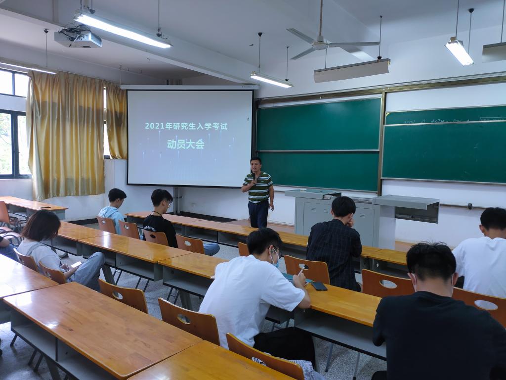 在崇礼楼211教室举行2021年研究生入学考试动员大会,院领导夏东升、李进平、刘园美及所有意向考研的毕业生参加了会议。