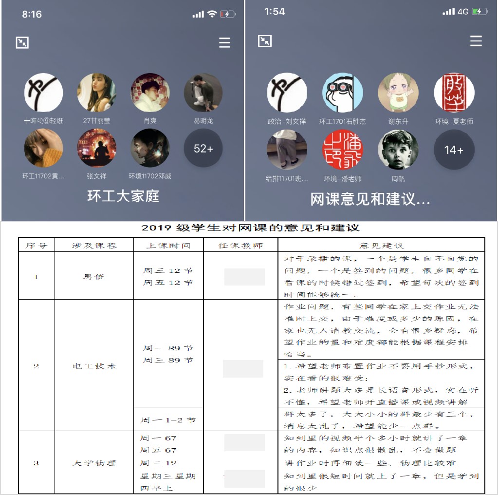 3月13日晚上,院长夏东升、书记谢晓萍、教学副院长潘飞以及学工人员,与17级环境工程学生网上“座谈”,听取对网上教学的意见和建议。