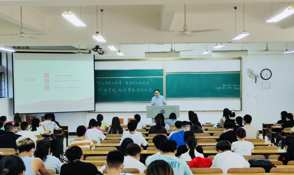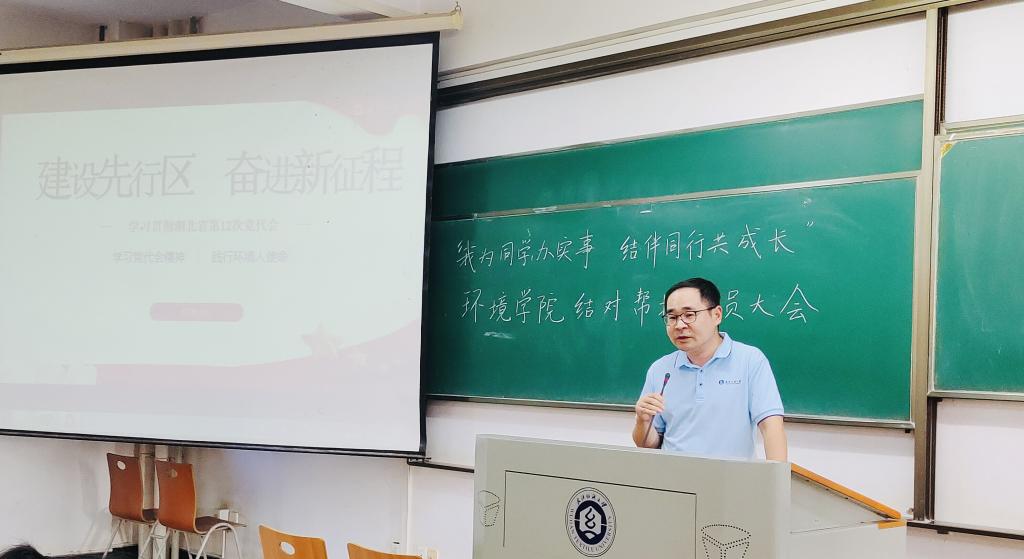 潘飞寄语全体学生党员,要深入学习党代会精神,践行环境人使命。一是学习习近平生态文明思想,以“党建红”引领“生态绿”;二是学好“环境”专业知识,做专业的“环境”人;三是投身“生态环保”实践,建设美丽中国。他还勉励同学们用脚步丈量祖国大地,用知识“点亮”江湖 ,助力武汉创建国家生态文明城市在建设美丽中国的过程中展现出属于环境学子的责任与担当!