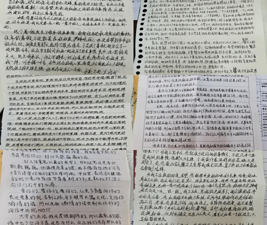 孩子的成长和感恩之心,是家长们最愿意收到的礼物,一封封满载沉甸甸思念的家书在第一时间抵达远方的家。千里之外,父母用乡音细读孩子的来信,他们亦满含深情回信,与孩子进行情感交流和心灵沟通。征得学生同意后,辅导员石伊可与同学们共读家书,“亲爱的儿子,来信已收到,我们感到十分欣慰,看到你慢慢长大我们十分的高兴。”“亲爱的宝贝,很高兴能用这种方式与你说说心里话,妈妈不善言辞,但是还是要啰嗦几句......”“女儿,你刚刚走入大学,是人生的转折点,就像车辆拐弯处,一定要站稳扶好。”