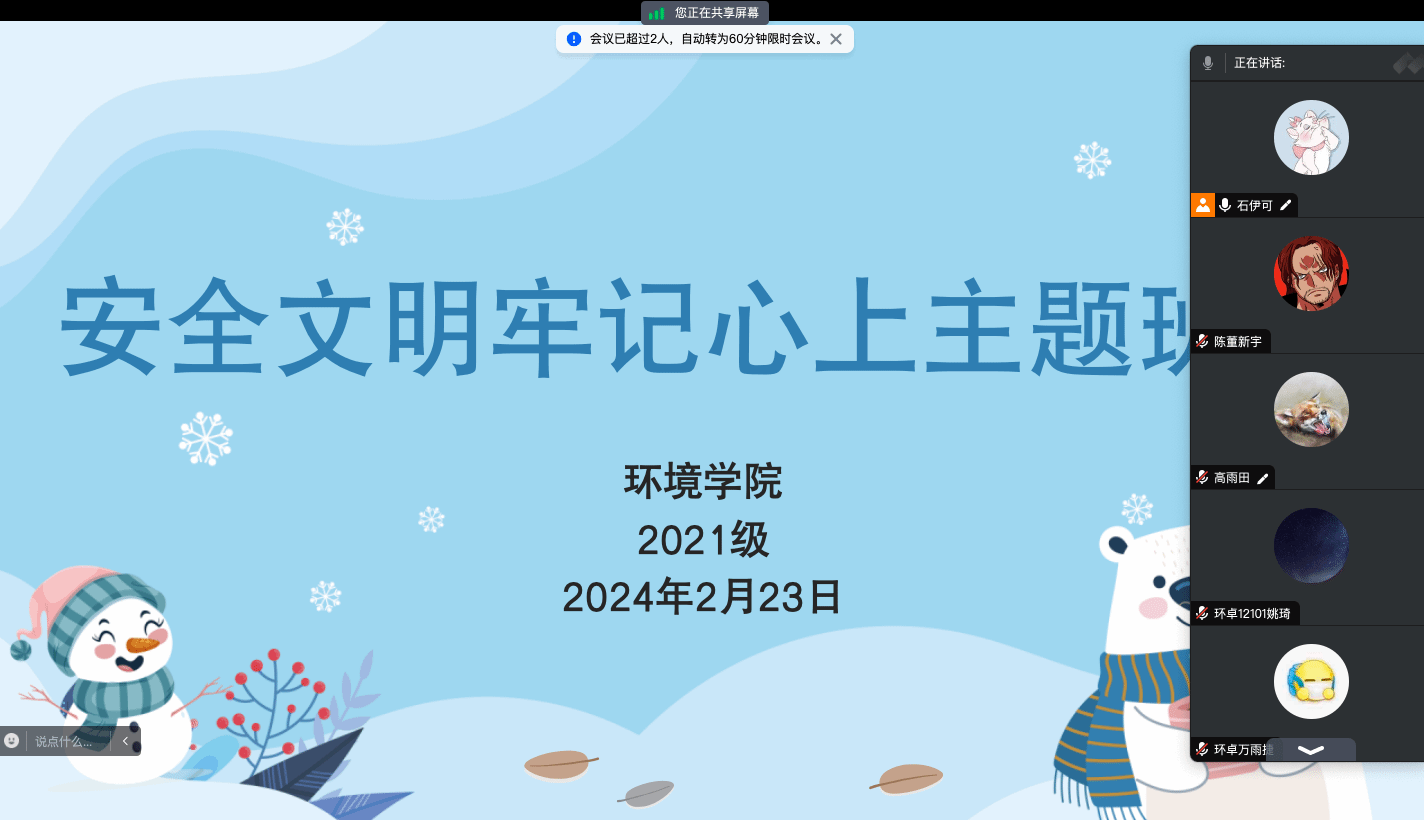 本科生、研究生分别开展了“安全文明牢记在心上”线上主题班会。