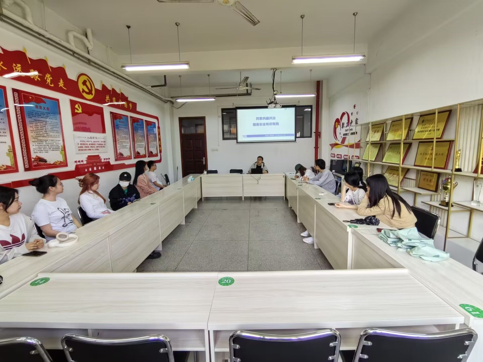 一以贯之加强寝室安全文明创建工作,引导同学们“共享共建共治,宿舍安全有你有我”的理念,做好自我管理、自我服务工作。