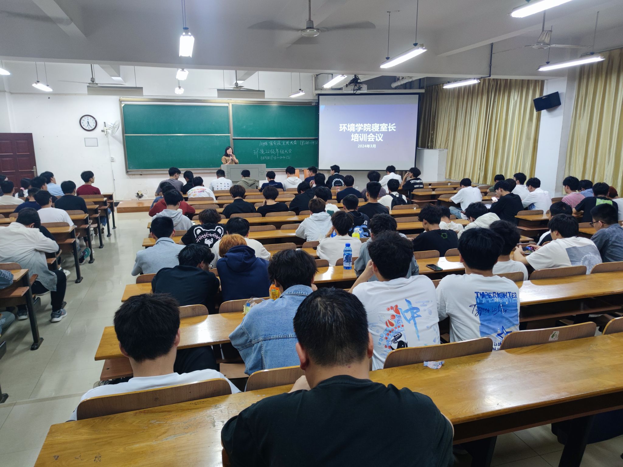 感谢各位寝室长在社区日常管理和平安宿舍建设中的努力和付出,她强调了寝室长工作的重要性,明确了寝室长的工作职责,并对后期工作提出了具体要求:一是要担起责任,当好寝室这个“小家”的家长,关心关注寝室同学的状态,有困难及时告知老师;二是希望寝室长发挥桥梁纽带作用,做好寝室成员与楼栋自管会之间的“连接器”,畅通沟通渠道;三是,需要重视学生宿舍管理过程中的实际问题,请理解和配合好楼栋管理工作,如有序摆放电动车,杜绝大功率电器使用等,共同营造良好的住宿环境、生活环境。