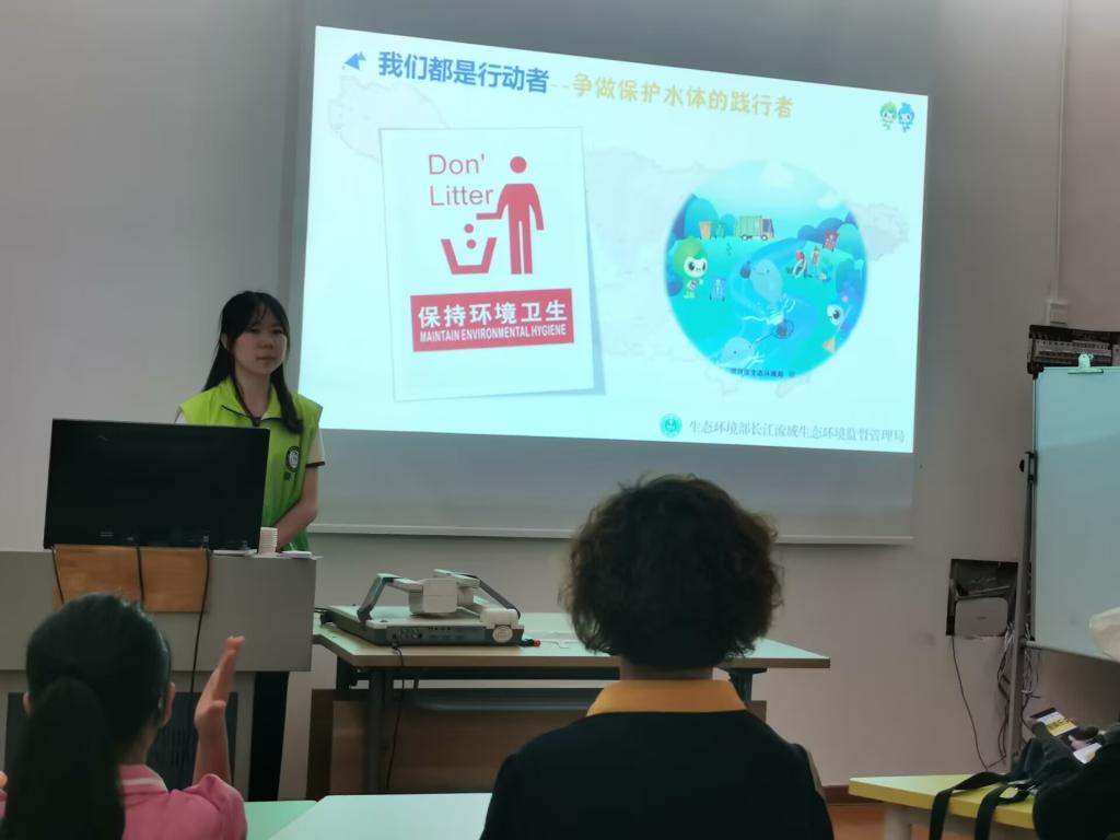 长江之水天上来全程落差越6000一江两湖连七河浸润着中国大地......从长江的八大支流到长江保护大正式实施“水中大熊猫”野生江豚快乐嬉戏江面到万里长江绿色生态画廊成线成片规模呈现绿芽实践团袁怡晗深入浅出生动易懂的为社区居民们带来了一场精彩的长江保护主题宣讲。