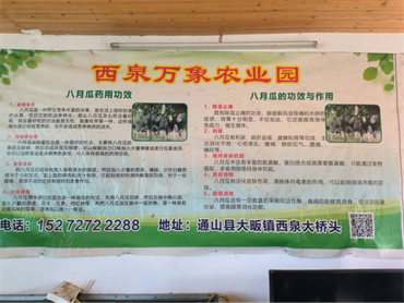 (图为西泉村村民的万象农业园的物种简介以及农作物间种的科学种植模式)