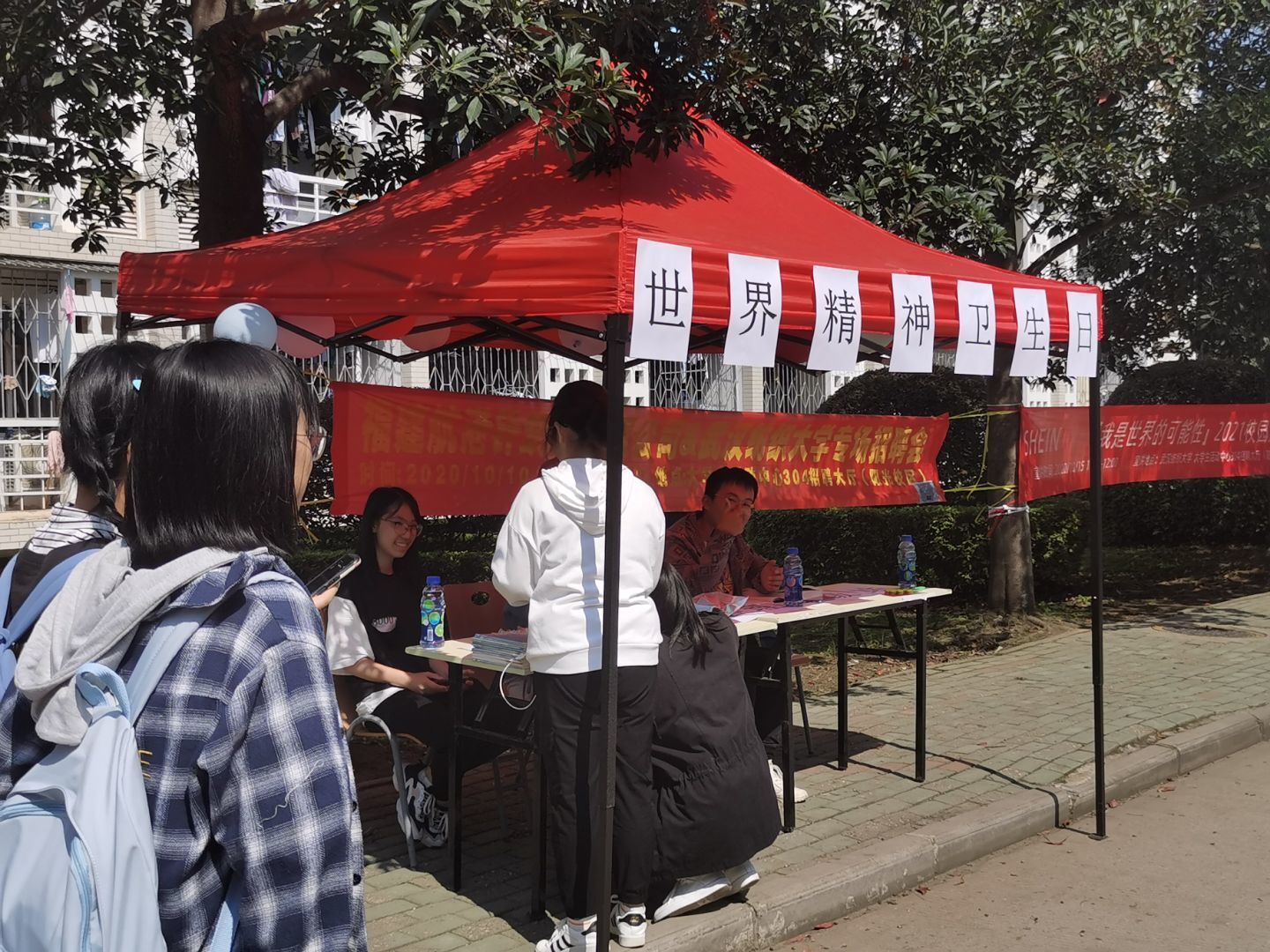 为增强同学们对2020年世界精神卫生日“弘扬抗疫精神,护佑心理健康”主题的理解,环境澳门中特网 心理二级站于10月10-11日在一食堂侧门开展了“弘扬抗疫精神 关注自我发展”世界精神卫生日活动,吸引了往来的同学积极参与进来。
