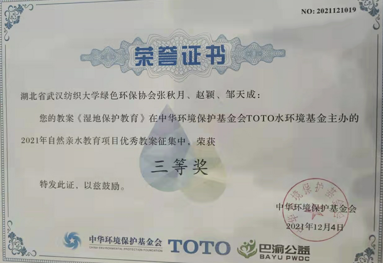12月4日,2021年中华环境保护基金会TOTO水环境专项基金自然亲水教育项目总结分享会在重庆举行,绿协志愿者环境卓越12001班邹天成作为获奖代表参加了本次总结大会。
