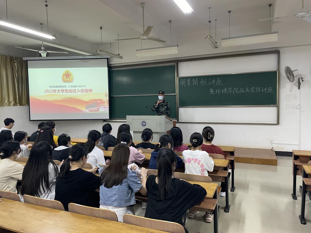 环境12105班刘存说:“从小到大都有一个参军梦,为了成为一名军人,我一直在坚持锻炼,保持体能训练。男儿有志须报国,金戈铁马铸英豪,在成年之际,我希望能够进入绿色军营,实现报国梦。”