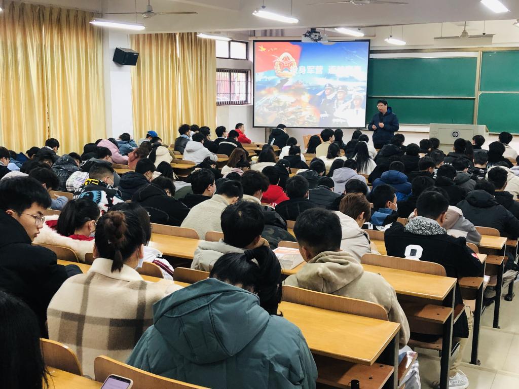 会上,播放了《参军报国 不负韶华》的宣传片,以青春追梦为主题,艺术呈现适龄青年参军前后,特别是经受军营磨砺发生的成长变化,着力展示军营大学校对新时代青年的人生塑造,倾情表达青春由磨砺而出彩、人生因奋斗而升华的思想意境,生动反映矢志报国、一生无悔的征兵宣传主题。刘园美从就业服务,家属待遇,退役考学等方面为同学们介绍了征兵入伍的条件政策与福利待遇,鼓励同学们响应国家号召,积极入伍。