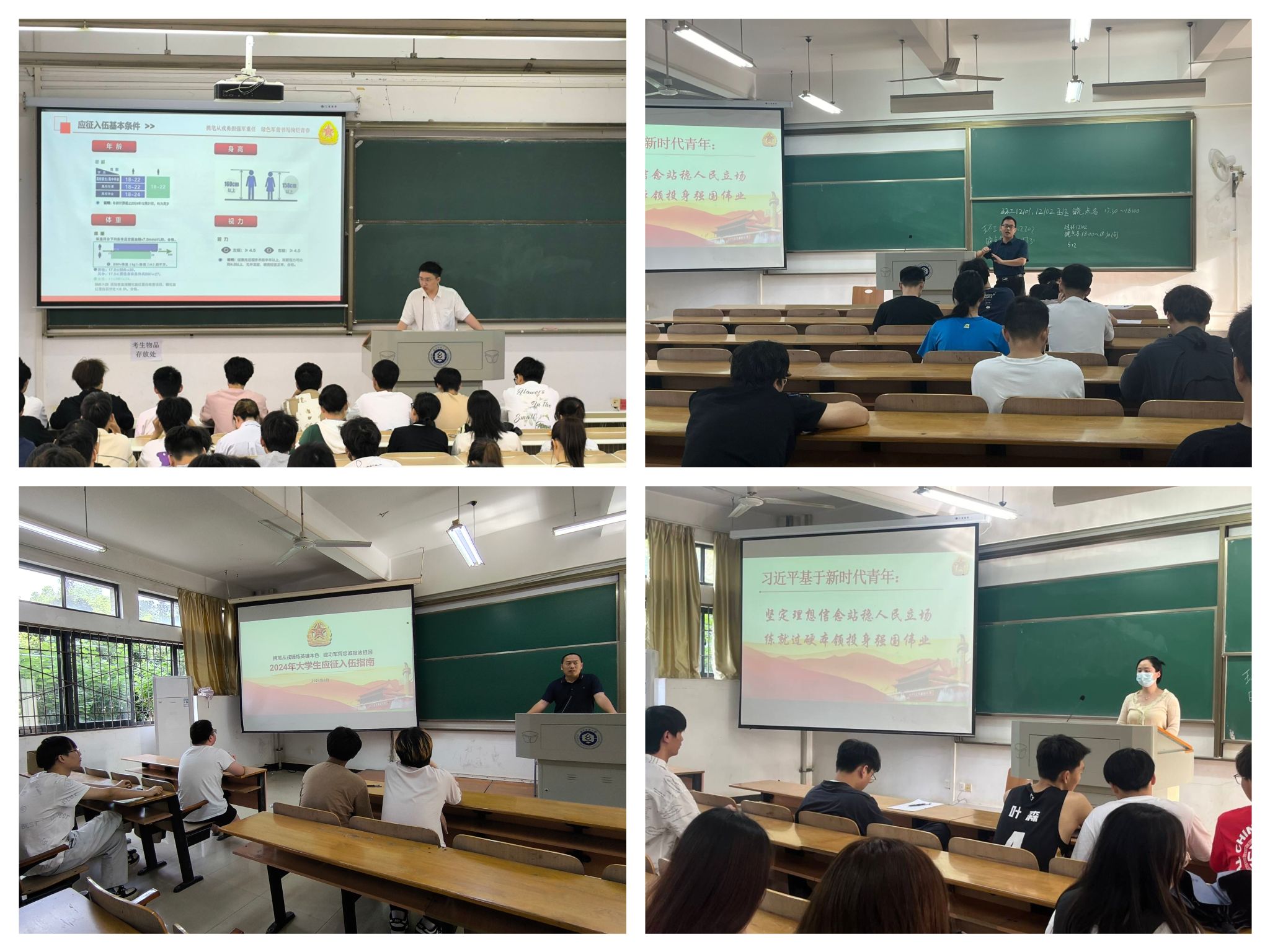 副书记、各年级辅导员、班主任分年级分班级开展了“携笔从戎锤炼英雄本色,建功军营忠诚报效祖国”主题班会。班会上,同学们集体观看了2024年征兵宣传短片,老师们详细解读了征兵政策,包括报名条件、选拔流程、福利待遇等方面,让同学们对入伍政策有了更为全面和深入的了解。