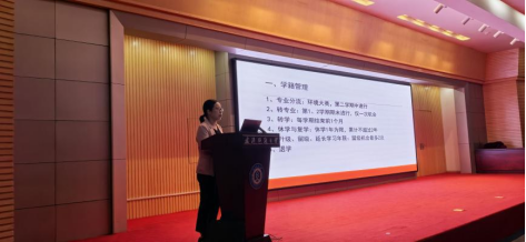 教学副院长蔡亚君为新生开展了学籍管理规定教育。她详细解读了学分制、选课系统、考试纪律、学位授予等关键规章制度,提醒同学们要严格遵守教学管理要求,科学规划学业,为大学学习生活打下坚实基础。
