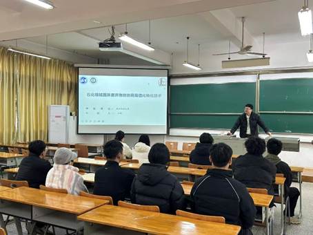 于2025年12月8日在崇礼楼(6号楼)221教室开展了专题学术活动,其主题为《石化领域固体废弃物的协同高值化转化技术》,本次活动由固废综合处置与协同利用技术研究创新团队王腾老师做主题报告,环境工程专业大二大三学生代表参与。